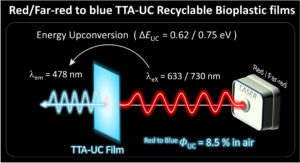 ゼラチンならびに界面活性剤からなるBioplastic filmにおける大気中での赤→青色フォトンアップコンバージョンに関する論文がJ. Mater. Chem. A誌にonline掲載されました。