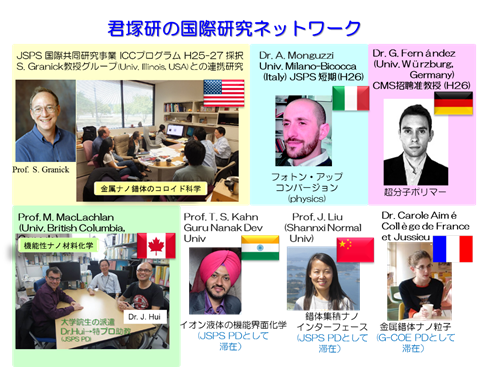 このように、君塚研究室は、分子の自己組織化を基礎として、分子システム化学、ナノ界面の新しい化学領域を世界先端レベルで展開することのできる、日本でも数少ない研究室のひとつです。3) 皆さんは、“熱い心”を持つ優秀なスタッフ陣とともに、質の高い基礎トレーニングを積み重ねることによって、将来どの分野に進んでも創造的な力を発揮でき、また世の中から欲しがられる“人財”へと育ってゆくことでしょう。